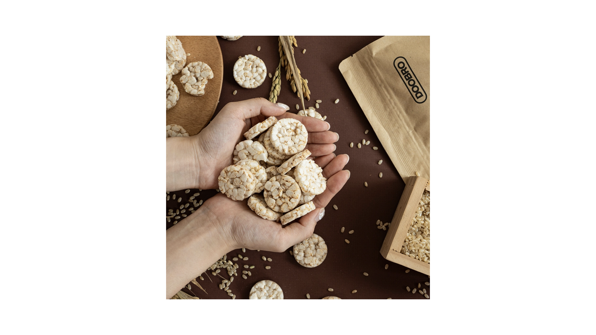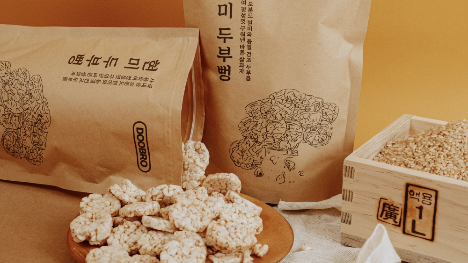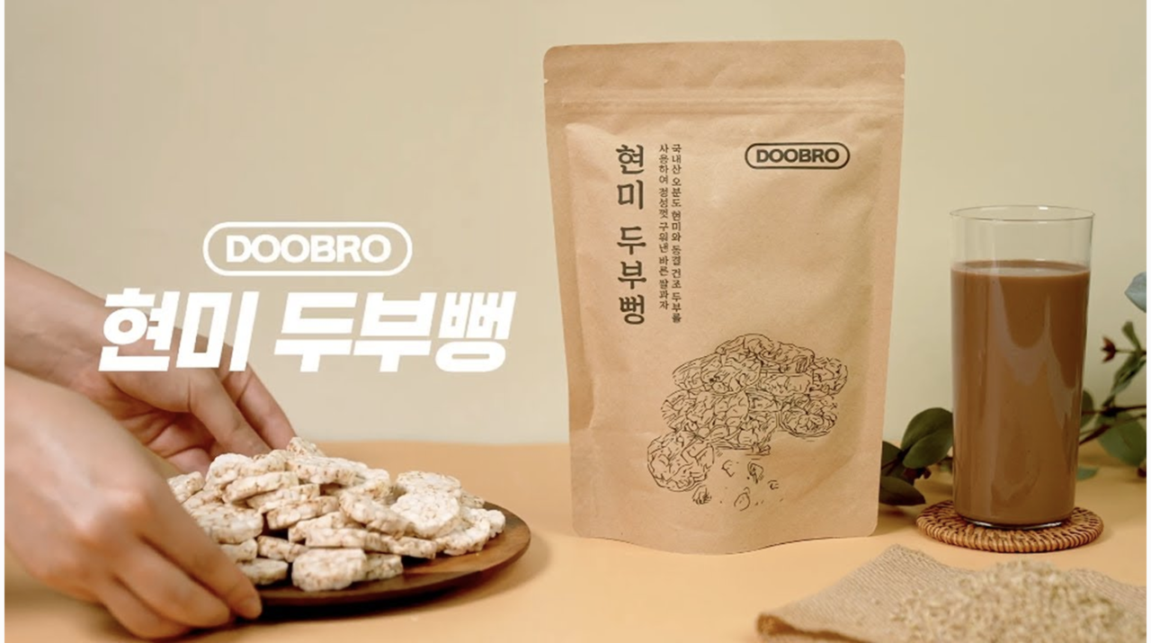 국산 현미와 두부로 만든 바삭한 뻥튀기 스낵.
