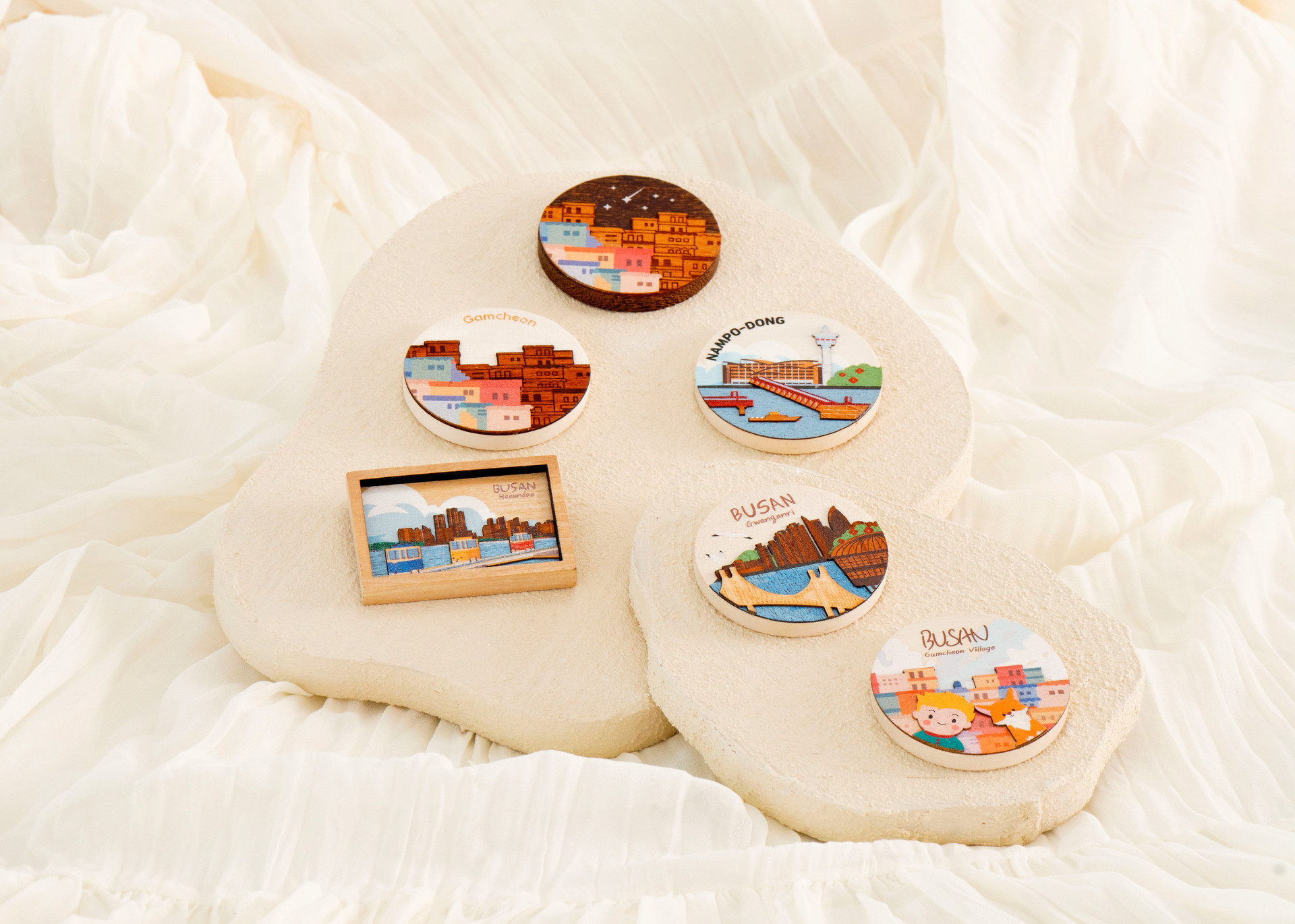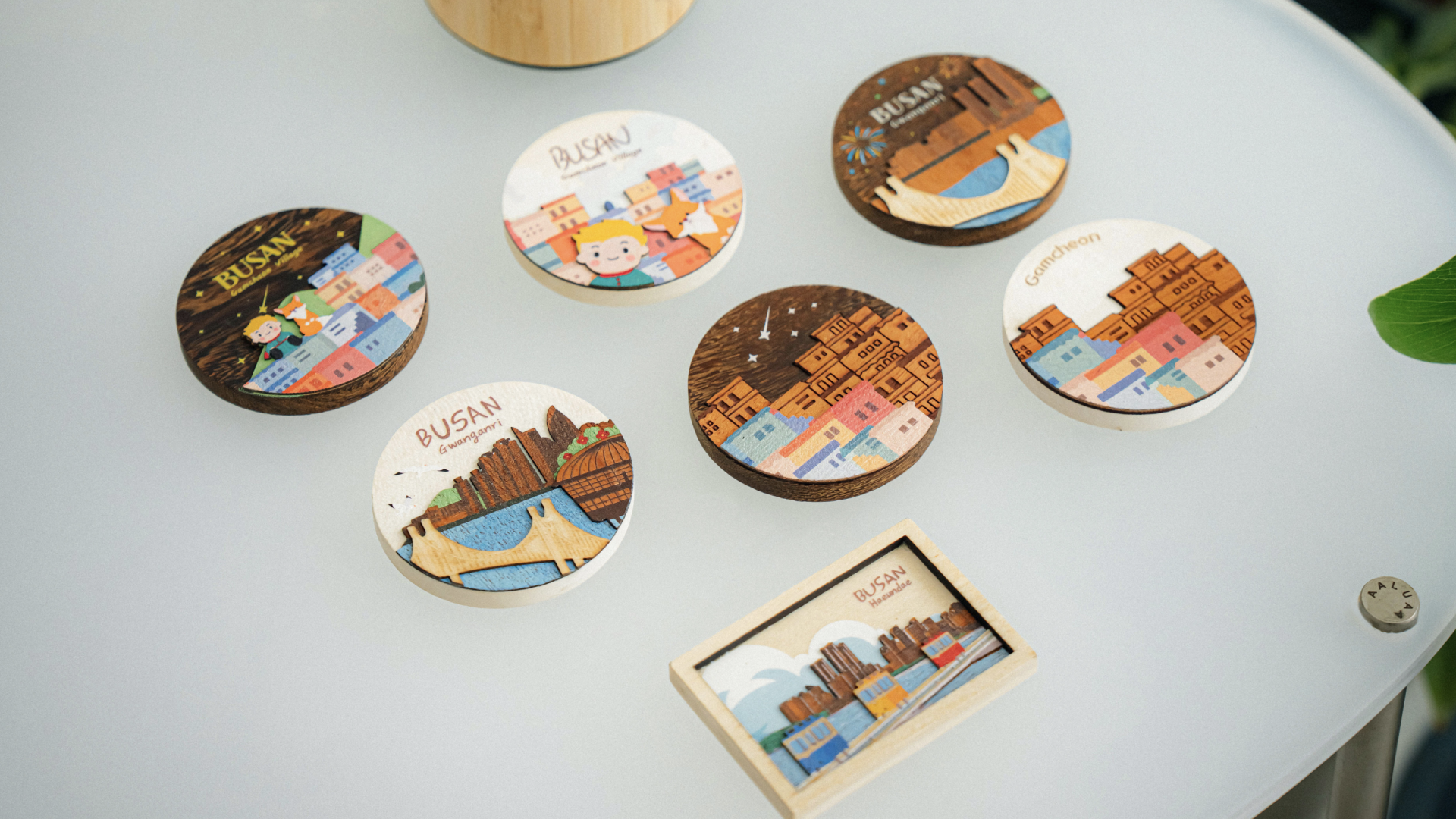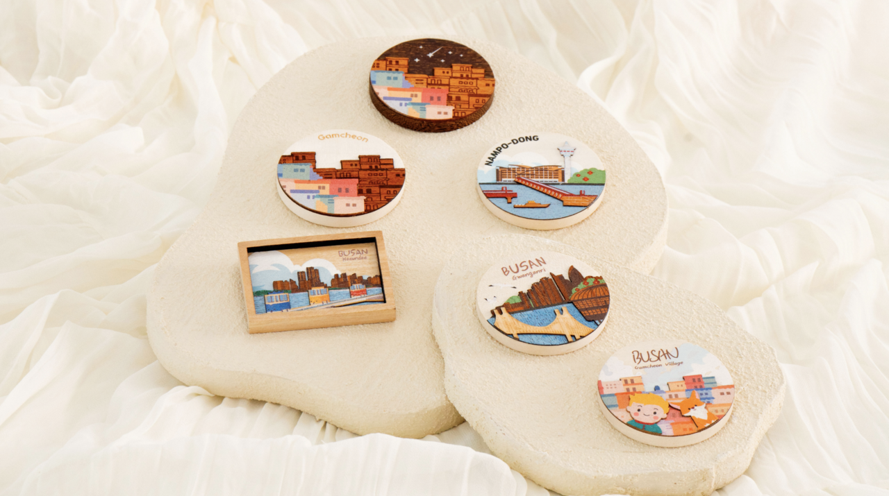 부산의 감성을 담은 원목 자석.